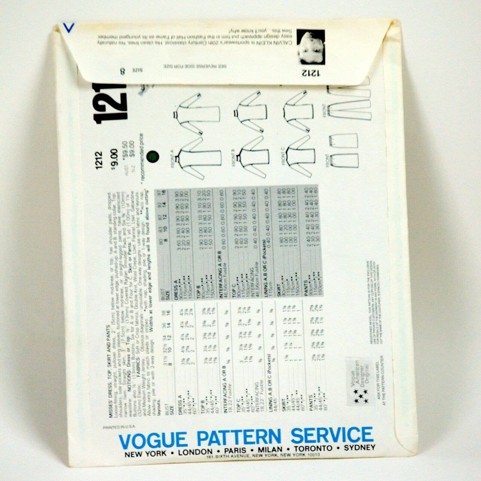 Vogue 1212 American Designer Original Cut Sewing Pattern Etsy